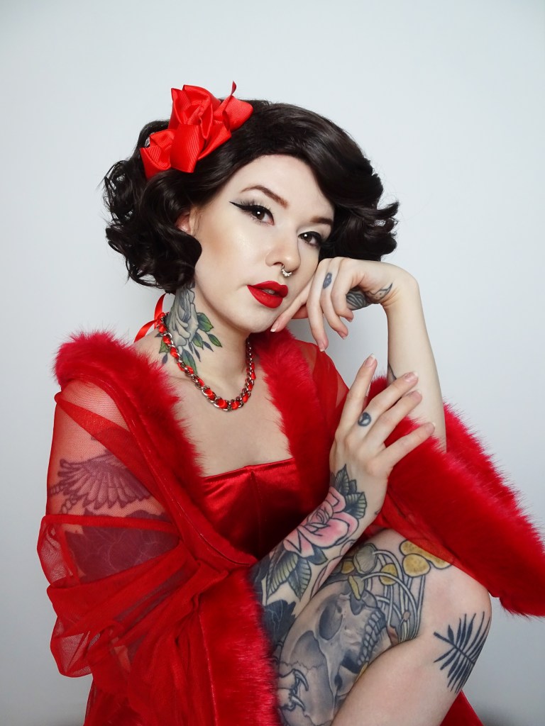 A little while back, the lovely Laura of 8th Sin sent me some of her pieces to shoot. Styling and concept were completely up to me and as someone who almost always wears black, I wanted to try something different to style this gorgeous red leather choker. I’ve had this stunning red latex mini beret…